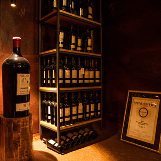 Il regno delle bottiglie, un vecchio palmento trasformato quasi come fosse un "museo personale" con tutti i tagli di bottiglie pronte da bere. Che magnum! E quante magnum.